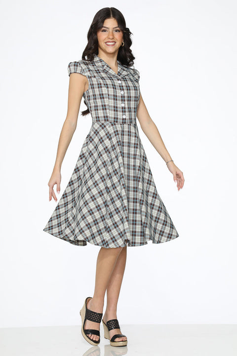 Braun-blau kariertes Swingkleid