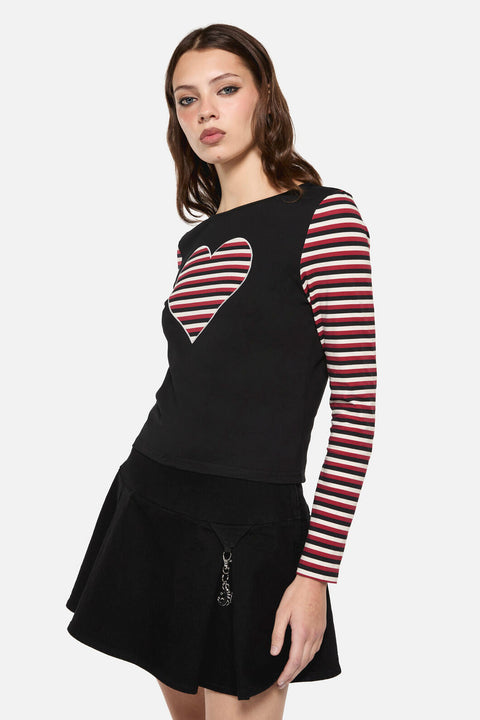 Gothic-Top mit kontrastierenden Ärmeln und schmaler Passform