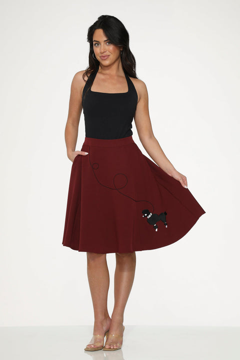 Burgunderroter schwarzer bestickter Pudel-Schaukelrock