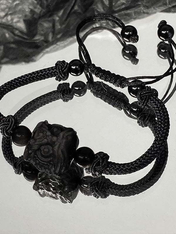 Black Lion Pendant Braided Rope Bracelet