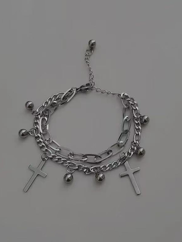 Double Layered Chain bead Cross Pendant Bracelet