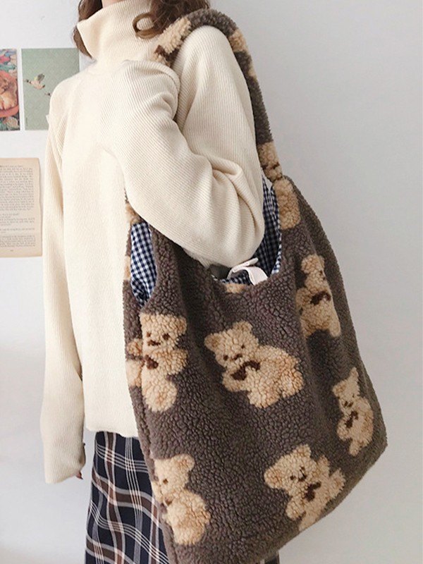 Bear Pattern Fleece Shoulder Bag