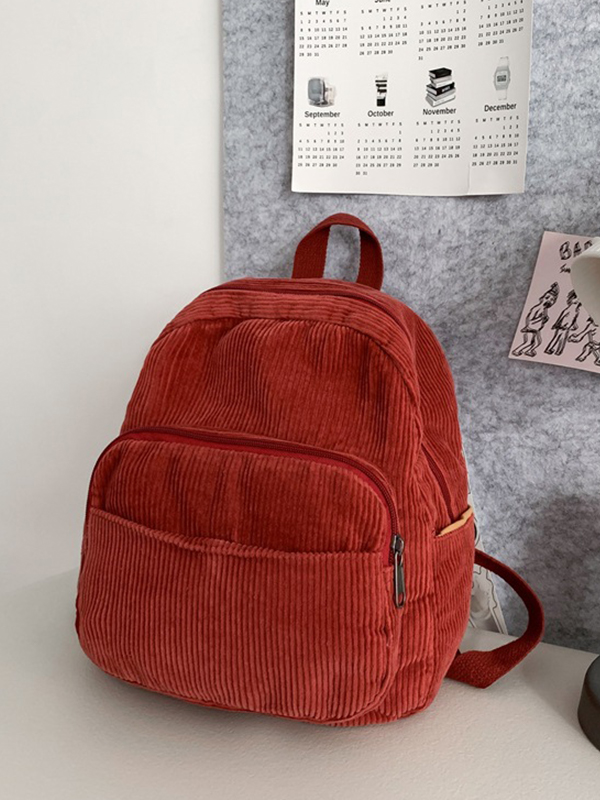 Solid Color Corduroy Mini Backpack