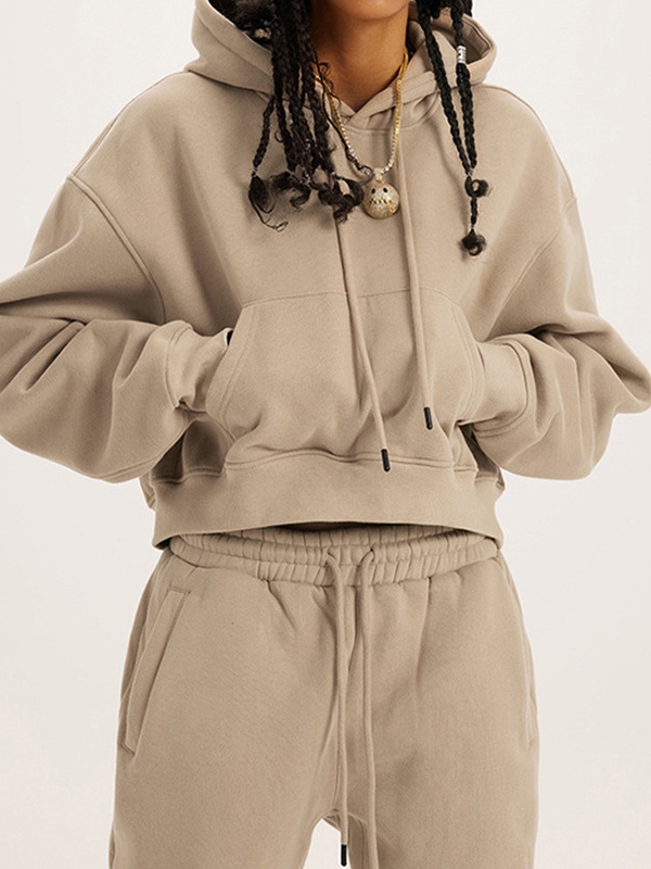 Solid Color Kangaroo Pocket Short Oversized Hoodie