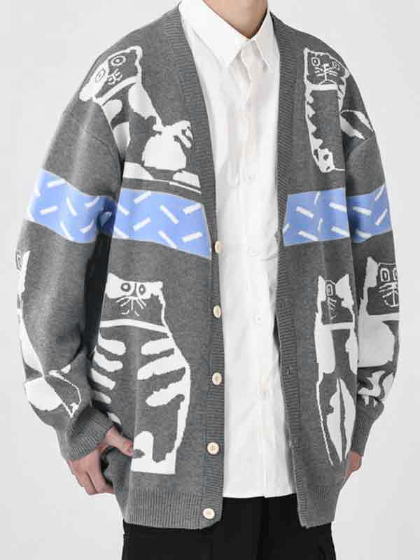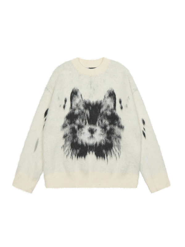 Men’s Vintage Abstract Kitty Jacquard Pullover Sweater