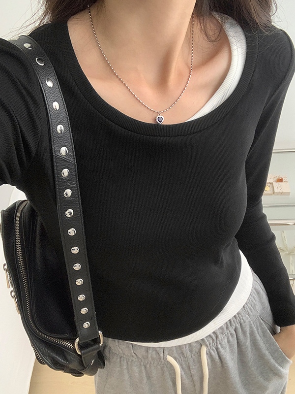 Contrast Color Fake Two Piece Long Sleeve Knit