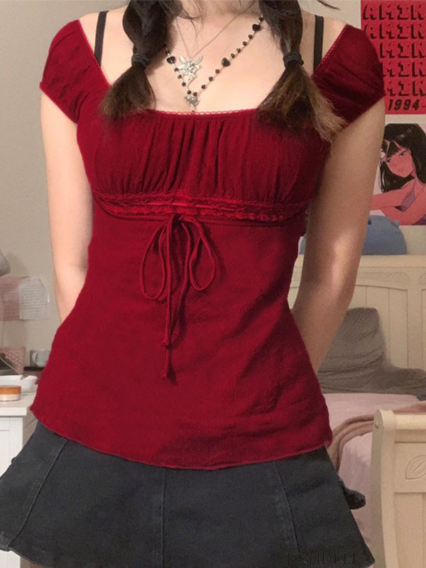 Vintage Tie Front Lace Trim Blouse