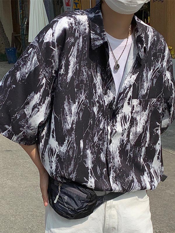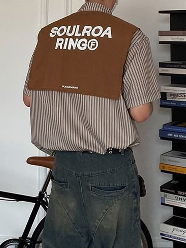 Men’s Striped Splice Vest Fake Two Piece Short Sleeve Blouse