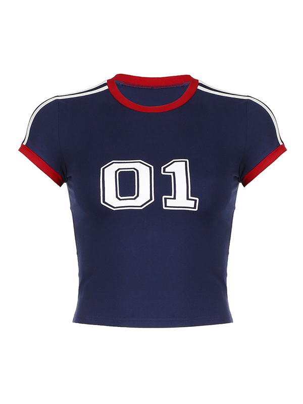 Stripe Star Print Patchwork Slim Long Sleeve Tee