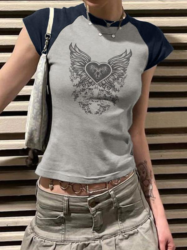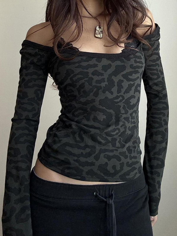 Lace Leopard Print Fake Two Piece Long Sleeves Tee