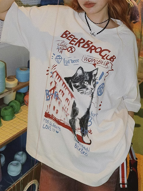 Vintage Print V Neck Breasted Long Sleeve Tee