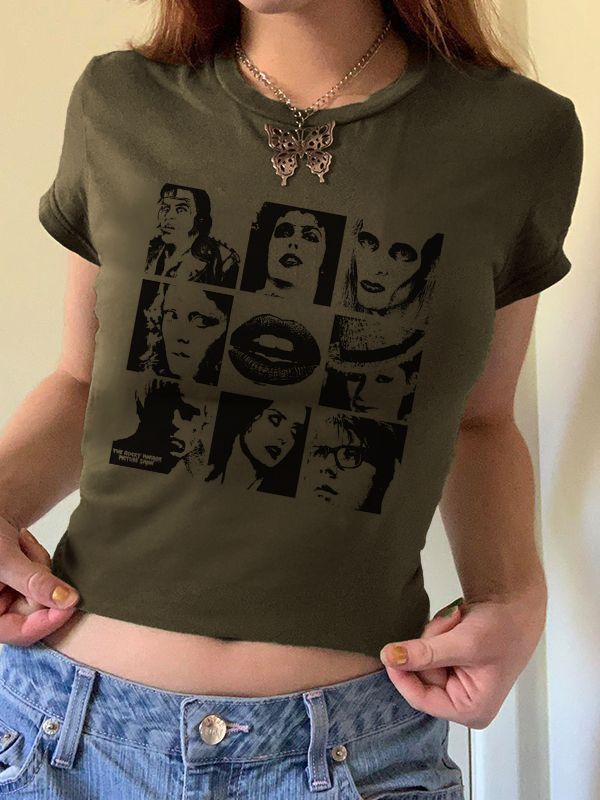 Vintage Heart Print Off Shoulder Long Sleeve Tee