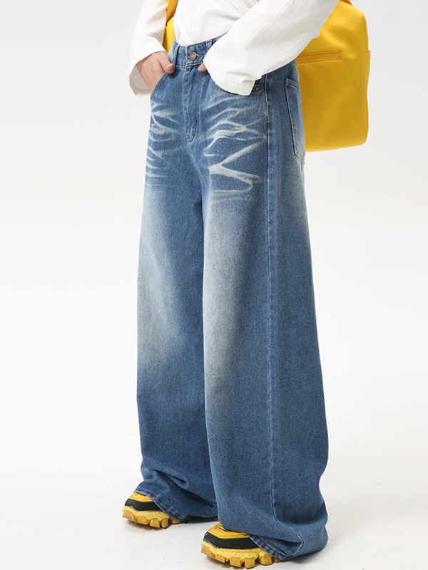 Men’s Pink Bullet Embroidery Ripped Loose Jeans