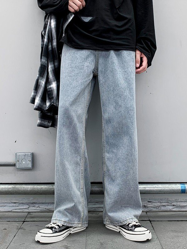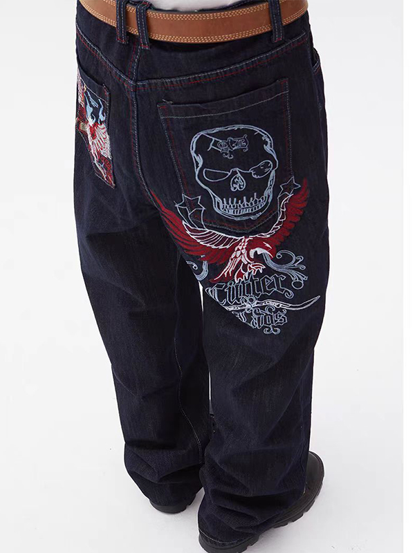 Men’s Coconut Tree Embroidery Print Drawstring Loose Jeans