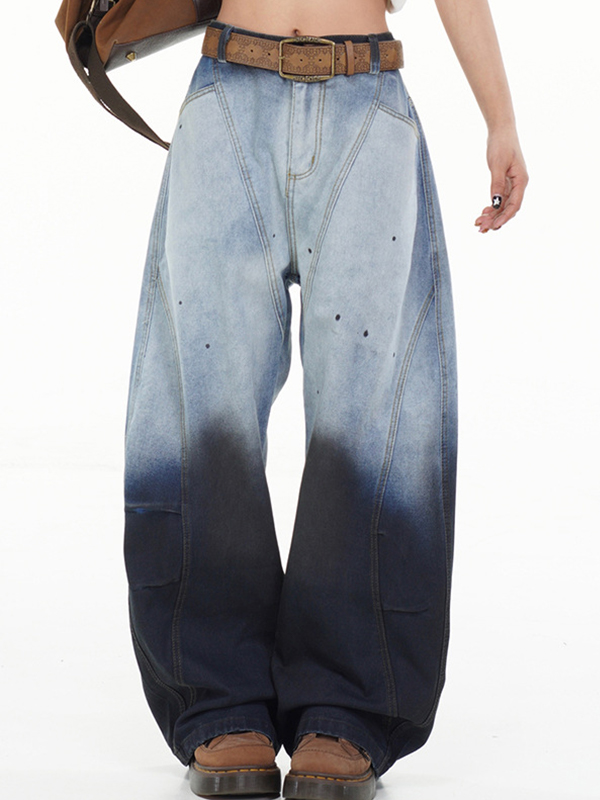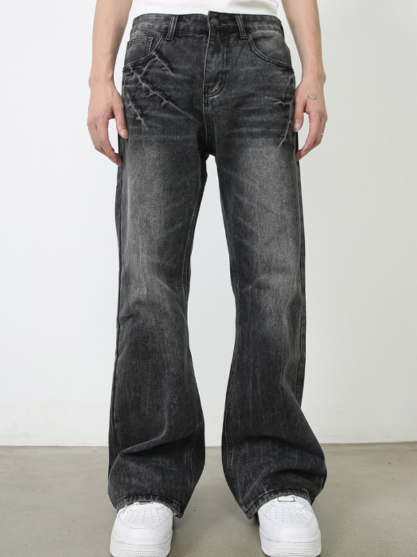 Men’s Distressed Interesting Flower Embroidery Loose Jeans
