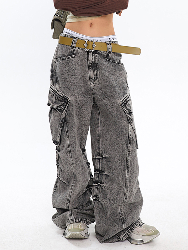 Retro Distressed Dirty Dyed Wide Legs Boyfriend Jeans