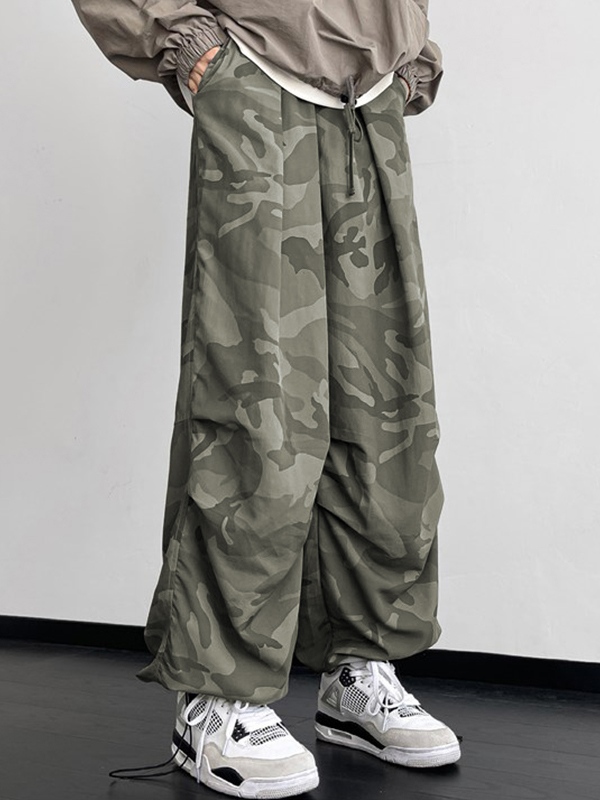 Men’s Camo Shirred Bound Feet Parachute Wide Leg Pants