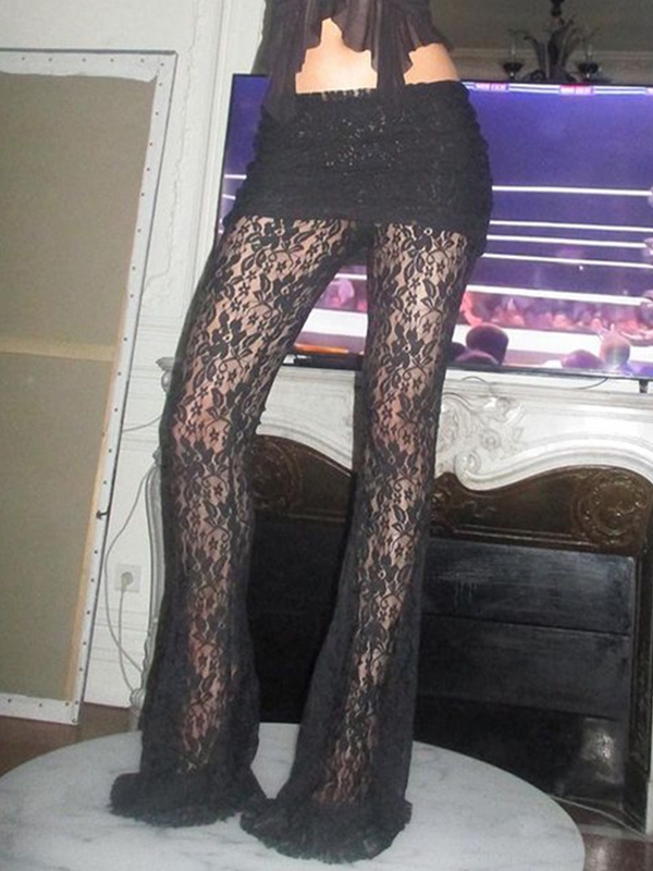 Lace Spliced Flare Leg Pants