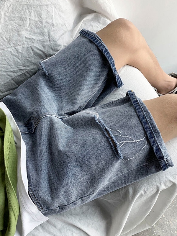 Men’S Washed Ripped Straight Denim Shorts