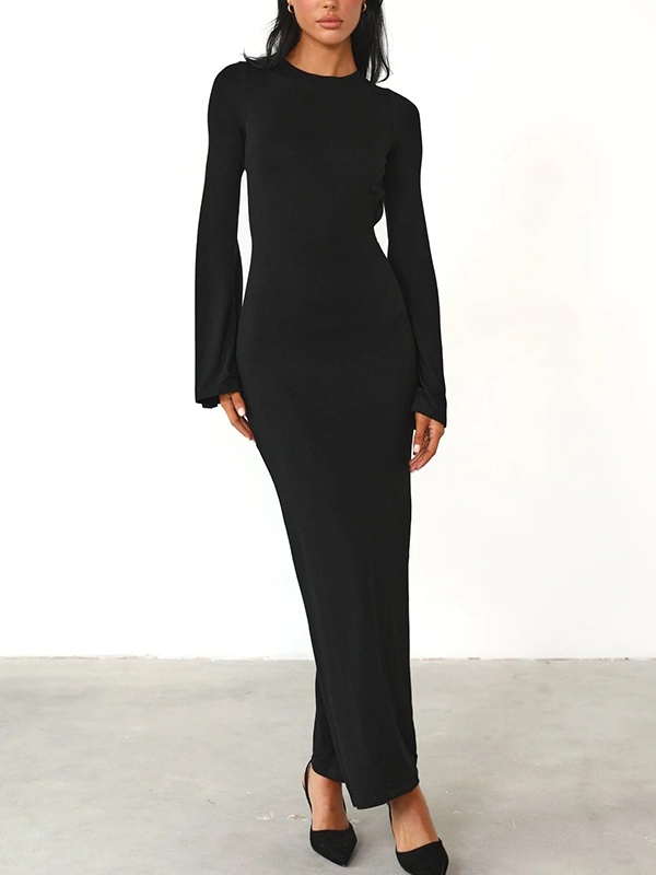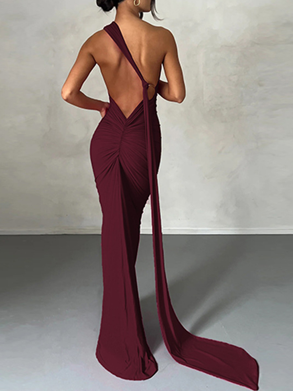 Backless Pleated Slim Fit Solid Color Sleeveless Maxi Dress
