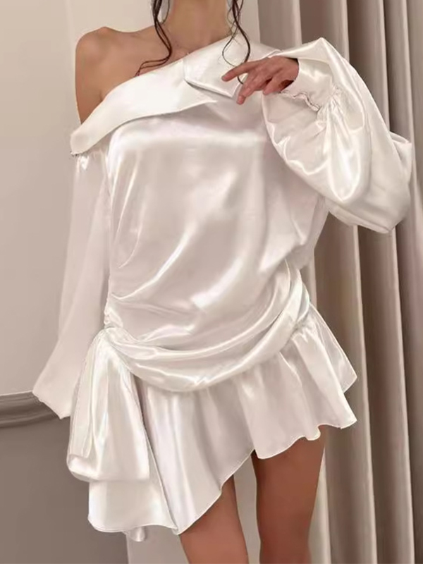 Sexy Backless Slope Neck Solid Color Mini Dresses