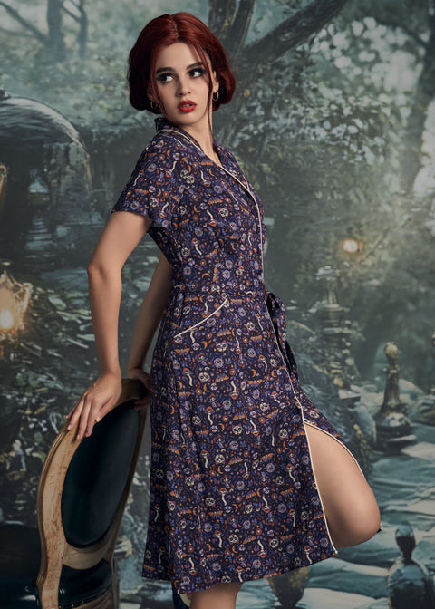 Wir präsentieren unser Hemdkleid im Vintage-Stil aus der ModCloth-Kollektion. Dieses Kleid vereint zeitlosen Charme mit ganztägigem Tragekomfort und besticht durch eine elegante Silhouette. Gefertigt aus einem leichten Webstoff, fällt es fließend und erinnert an den Charme der 1940er und 1950er Jahre. Das Kleid verfügt über einen abgerundeten Reverskragen, zarte Paspeln, eine durchgehende Knopfleiste, einen abnehmbaren Bindegürtel und schräge Eingrifftaschen an der Hüfte. Mit ihrer eleganten, lässigen Silhouette und dem bezaubernden Blumenmuster ist dieses Kleid eine vielseitige und raffinierte Wahl für jeden Anlass und verleiht Ihrer Garderobe einen Hauch von Vintage-inspirierter Eleganz.