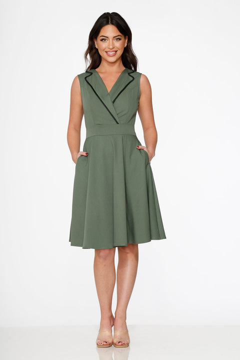 Das mühelos elegante, olivgrüne Swingkleid „Olive Jenny“ von Orchid Bloom verleiht Ihrem Alltagslook eine raffinierte Note. Mit seinem sanften Olivton und der zeitlosen Swing-Silhouette lässt sich dieses Kleid mühelos vom Tag in den Abend tragen. Gefertigt aus einem geschmeidigen Polyester-Spandex-Gemisch, bietet es sanften Stretch für eine schmeichelhafte und bequeme Passform. Mit Reißverschluss hinten und praktischen Seitentaschen vereint es Vintage-Charme mit moderner Funktionalität. Materialzusammensetzung: 97 % Polyester, 3 % Spandex. Das Material ist dehnbar. Länge: 104 cm. Importiert. Details: Reißverschluss hinten, Seitentaschen.