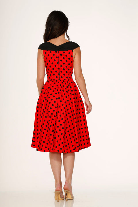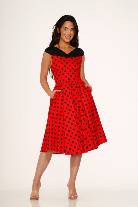 Das verspielte und zeitlose rot-schwarze Polka-Dot-Swingkleid von Orchid Bloom ist ein Vintage-inspiriertes Basic mit einem modernen Twist. Die klassischen schwarzen Punkte auf dem auffälligen roten Grund verleihen der schwingenden Silhouette einen Hauch von Retro-Flair für jeden Anlass.