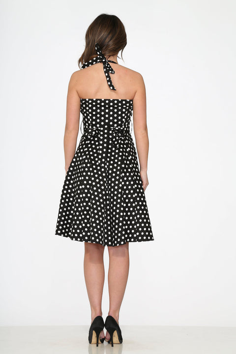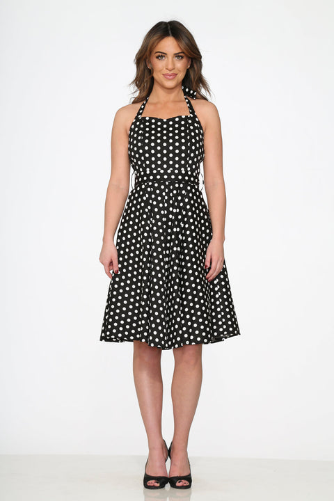 Verleihen Sie Ihrem Stil mit dem schwarz-weißen Polka-Dot-Neckholderkleid von Orchid Bloom einen Hauch von Vintage-Charme! Mit seinem klassischen Neckholder-Ausschnitt und dem verspielten Polka-Dot-Muster ist dieses Retro-Lieblingskleid perfekt für Gartenpartys, romantische Abende und alle anderen Anlässe. Der schwingende Rock und der dehnbare Baumwollmix sorgen für optimalen Tragekomfort und Stil in perfekter Harmonie.