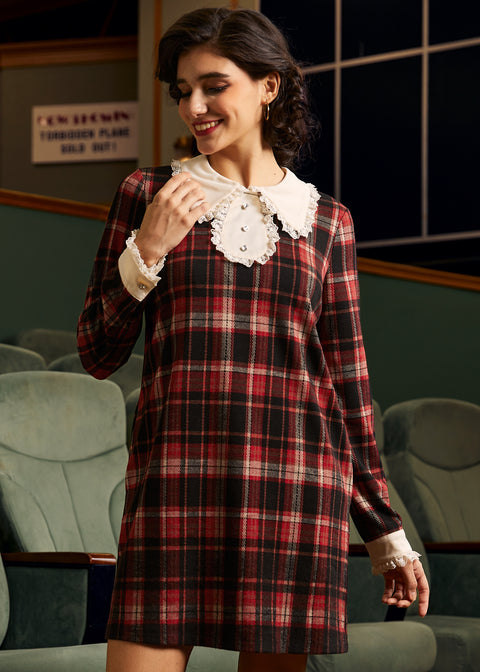 Das Spitzenkleid mit Blättermuster aus unserer ModCloth-Eigenmarke vereint zeitlose Herbst-Eleganz mit einem modernen Touch. Gefertigt aus weichem Ponte-Stoff, bietet dieses rot-karierte Kleid höchsten Tragekomfort dank mittlerer Dehnbarkeit und schmeichelt so jeder Figur. Zarte Spitzenborte und eine kontrastierende Knopfleiste verleihen der klaren Silhouette einen Hauch von Verspieltheit. Knopfverschluss und praktische Seitentaschen verbinden Funktionalität mit Stil. Dieses Kleid ist perfekt für Galeriebesuche oder ein entspanntes Herbstpicknick und verleiht Ihrer Garderobe einen Hauch von Magie.