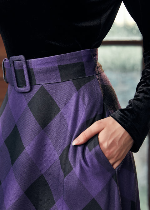 Aus unserer ModCloth-Eigenmarke stammt das Midikleid „Twilight Serenade“, eine nostalgische Hommage an Vintage-Charme mit modernem Touch. Das Strickkleid in sattem Lila-Karo besticht durch ein schmeichelhaftes Oberteil mit doppeltem Rundhalsausschnitt und einen kontrastierenden Rock. Die Taillengürtel betonen die Silhouette. Mittlerer Stretch sorgt für Komfort und Bewegungsfreiheit, während eine dezente Tasche ein praktisches Detail darstellt. Dieses Kleid ist ideal für festliche Anlässe oder gemütliche Winterdates und garantiert einen umwerfenden Auftritt.