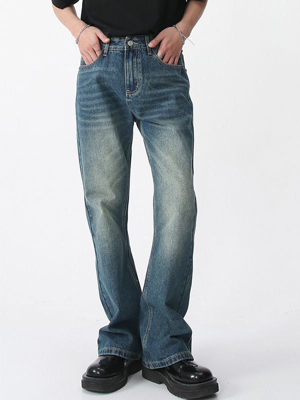 Star Print Vintage Blue Wide Leg Boyfriend Jeans