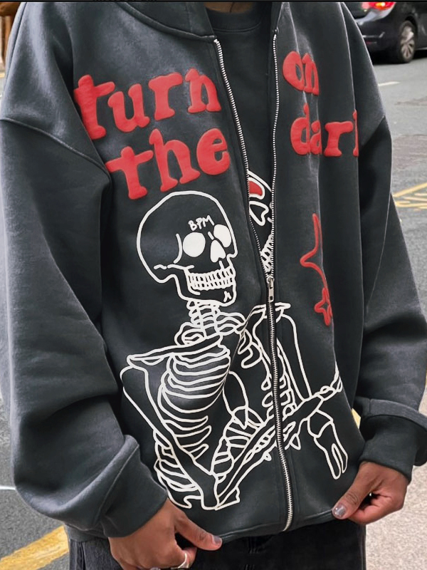 Men’s Letter Skull Graphic Zip Up Hoodie