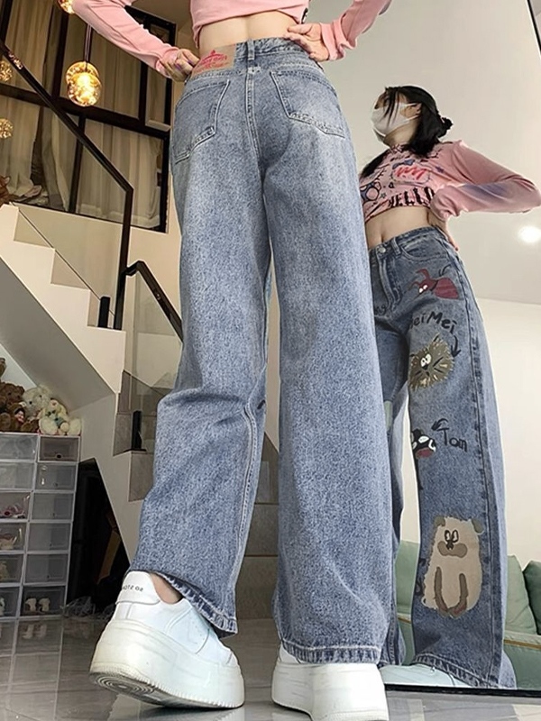 UniqueStyle: These jeans feature a unique animal graffiti print, making them a standout piece in any wardrobe.