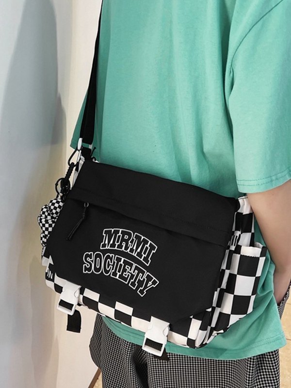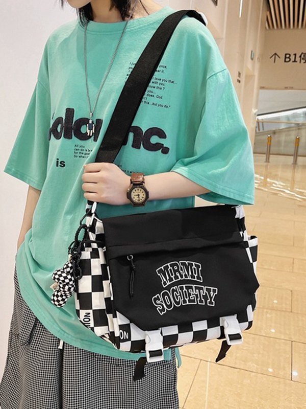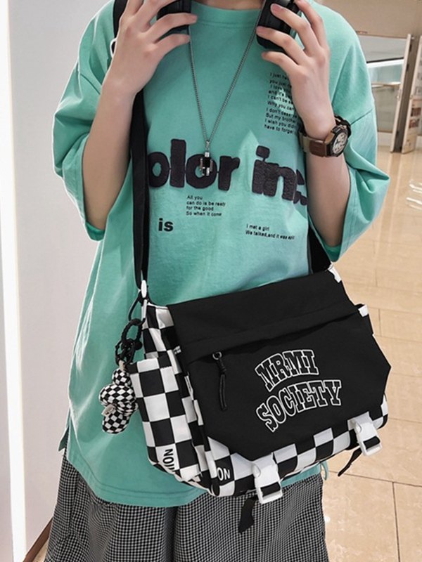 Be the first to review “Buckle Strap Checkered Nylon Crossbody Bag”