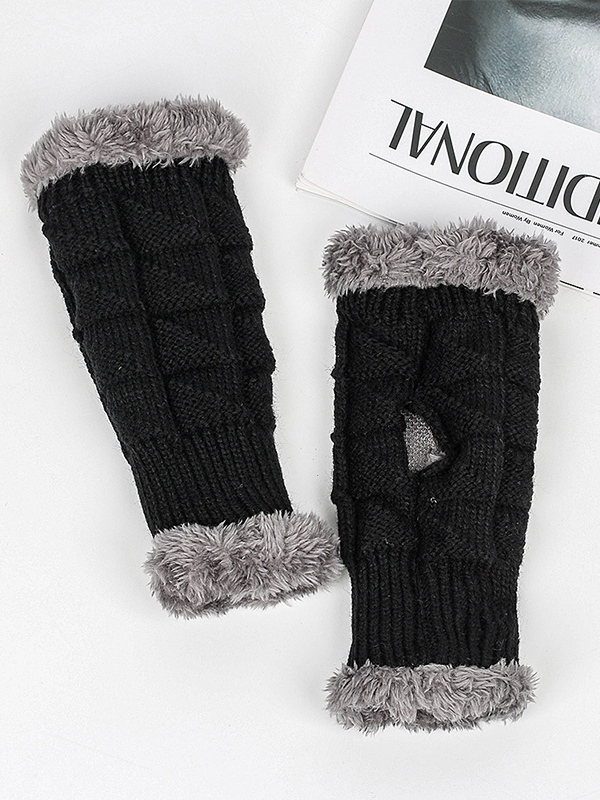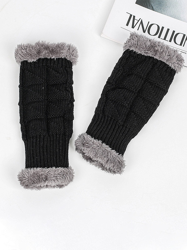Fingerless Thick Warm Fleece Lining Knitted Gloves