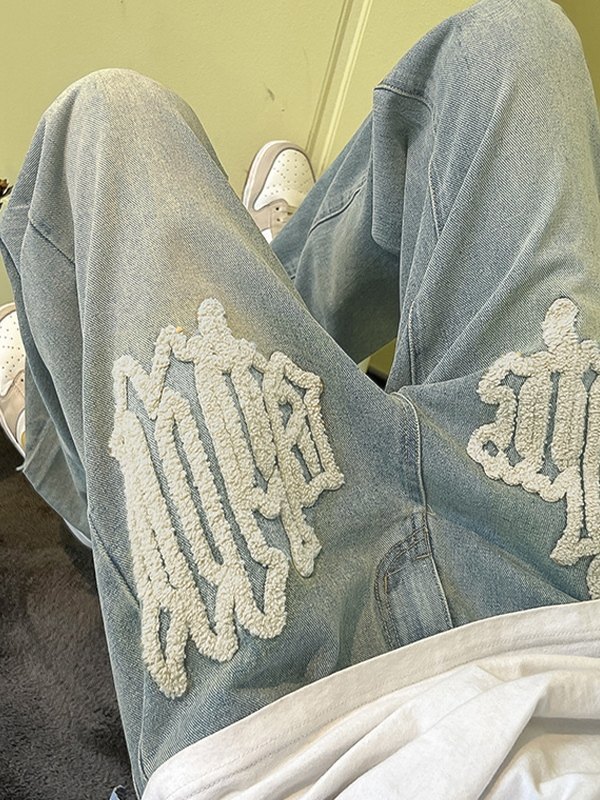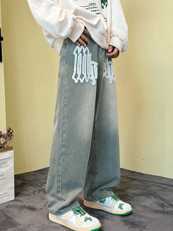 Be the first to review “Men’s Fuzzy Letter Straight Leg Jeans”