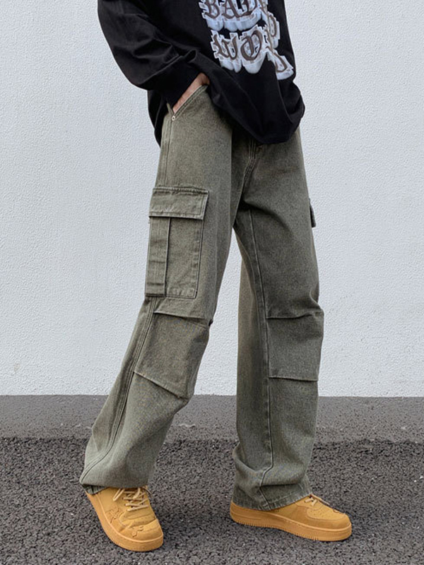 Men’s Green Wash Multi Pocket Ruched Cargo Jeans