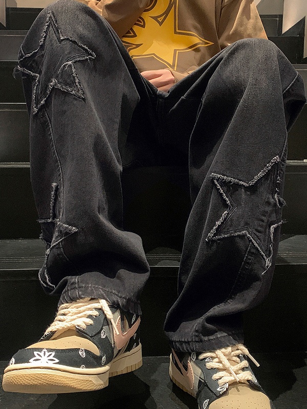 Men’s Star Patchwork Loose Straight Leg Jean