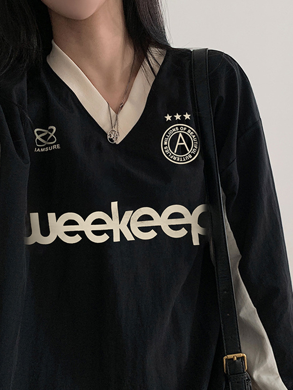 Be the first to review “Preppy Contrast Color Letter Print V Neck Sweatshirt”