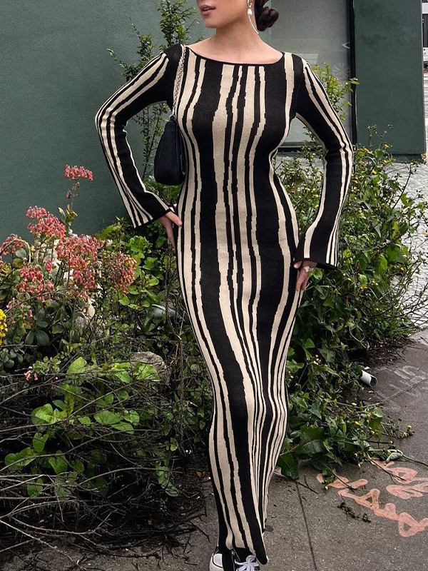 Be the first to review “Striped Crew Neck Long Sleeve Maxi Dress”