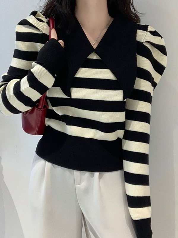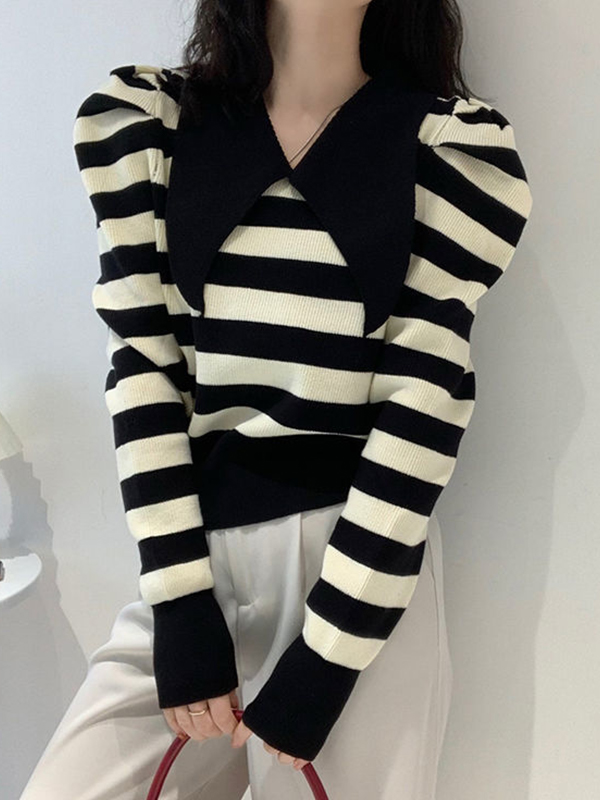 Be the first to review “Striped Puff Sleeve Knit Sweater”
