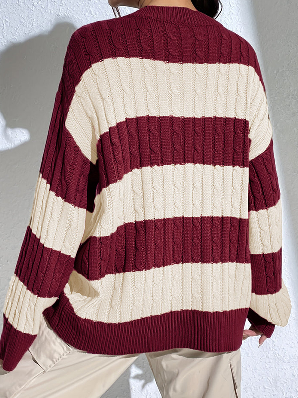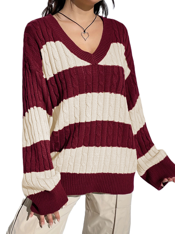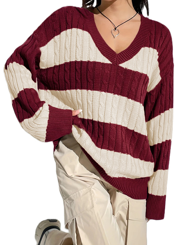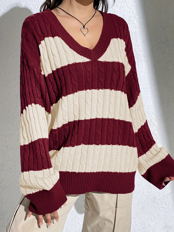Be the first to review “V Neck Loose Contrast Stripes Casual Sweaters”