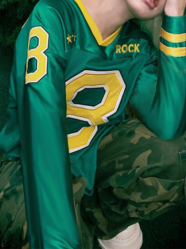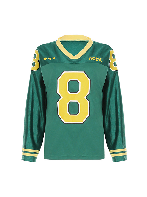 V Neck Star Digital Print Oversized Long Sleeve Tee