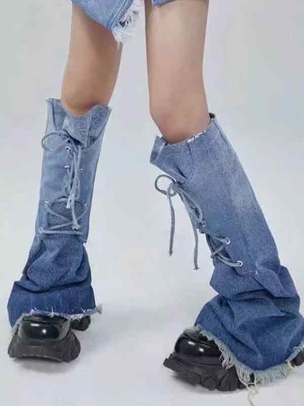Vintage Blue Ombre Burr Lace Up Leg Warmer