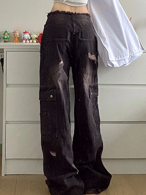 Be the first to review “Vintage Distressed Studded Ripped Cargo Jeans”