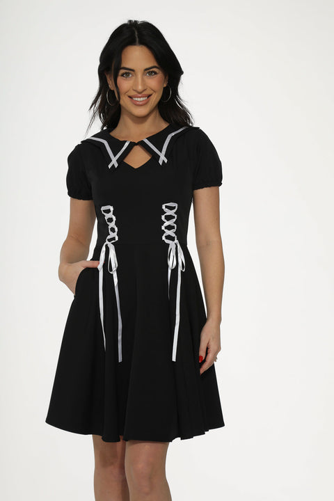 Gothic-Swingkleid mit schwarzem und weißem Besatz