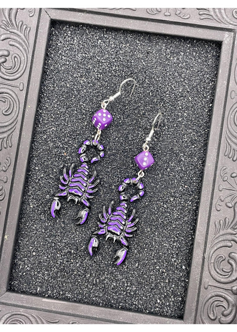 Skorpion-Tattoo-Ohrringe mit lila Würfeln