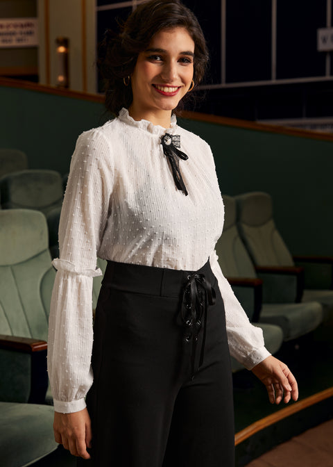 Hüllen Sie sich in die zauberhafte Wärme des Winters mit der Bygone Beauty Bluse mit Ballonärmeln aus unserer ModCloth-Eigenmarke. Dieses gewebte Schmuckstück in zartem Vanille-Elfenbein besticht durch voluminöse Ballonärmel und einen verführerischen Schlüssellochverschluss – perfekt, um Ihrem Outfit einen Hauch von Vintage-Eleganz zu verleihen. Der leichte Stoff und die lockere Passform machen sie zum idealen Begleiter für hochgeschnittene Hosen und eine charmante Brosche. So gelingt Ihnen der perfekte Übergang vom gemütlichen Café-Nachmittag zur bezaubernden Abendveranstaltung.